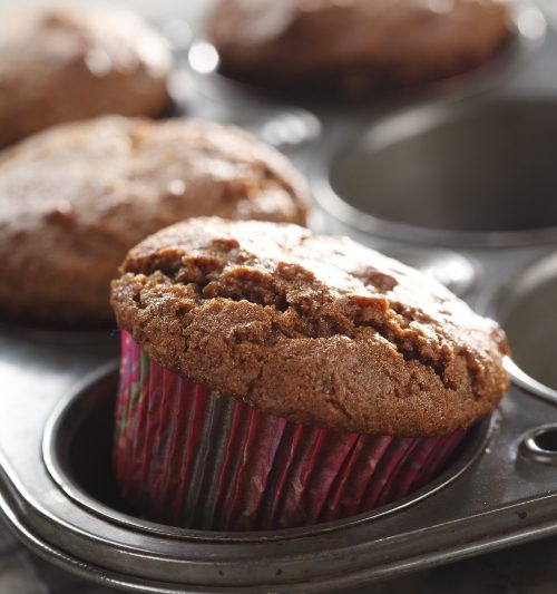 - In a medium mixing bowl, whisk together rice flour blend, baking soda, ginger, cinnamon, cloves, xanthan gum and salt until well blended. Add the lentil purée, eggs, brown sugar, oil, molasses, vanilla and vinegar and beat with an electric mixer on low speed until blended. Divide batter evenly in muffin pan.