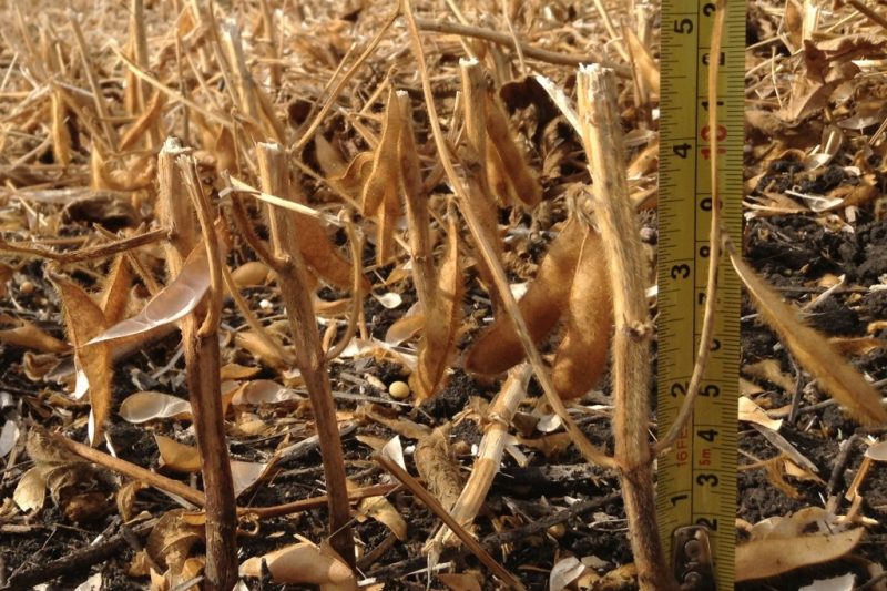 In a perfect world, the soybean plant would pop up out of the ground, grow some leaves and then really stretch a bit before setting where that first pod will form.