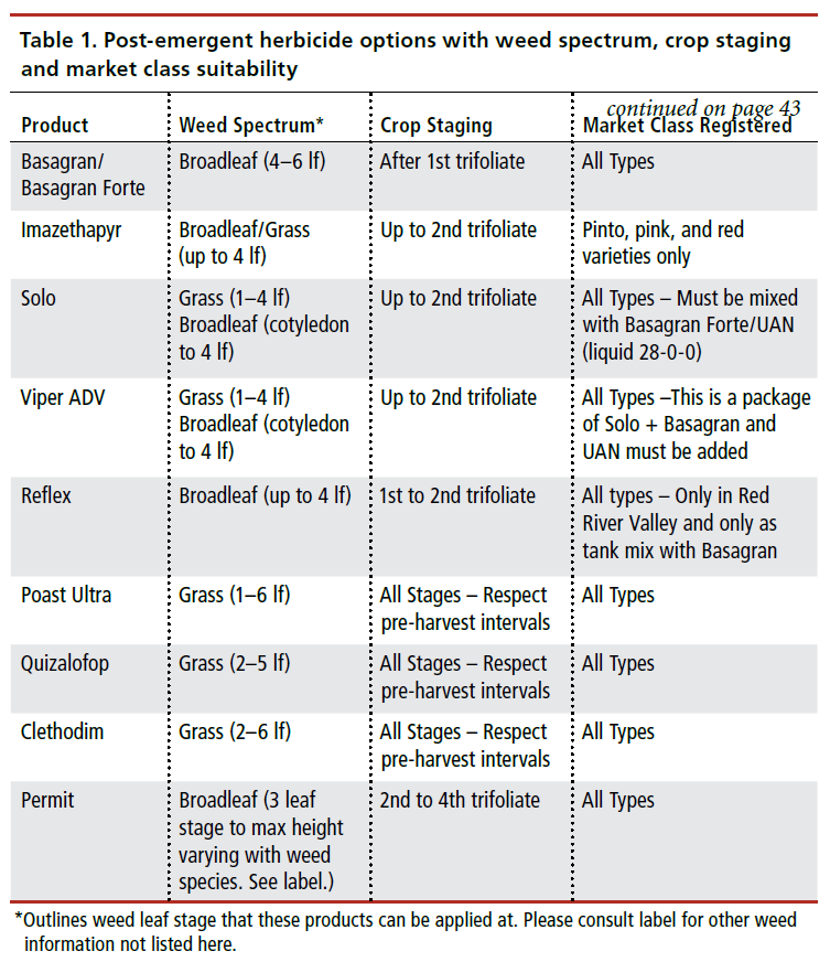 fourth trifoliate but prior to flowering, and has planting restrictions of three years for canola and sunflowers. (Source: Nebraska Dry Bean Production Guide).