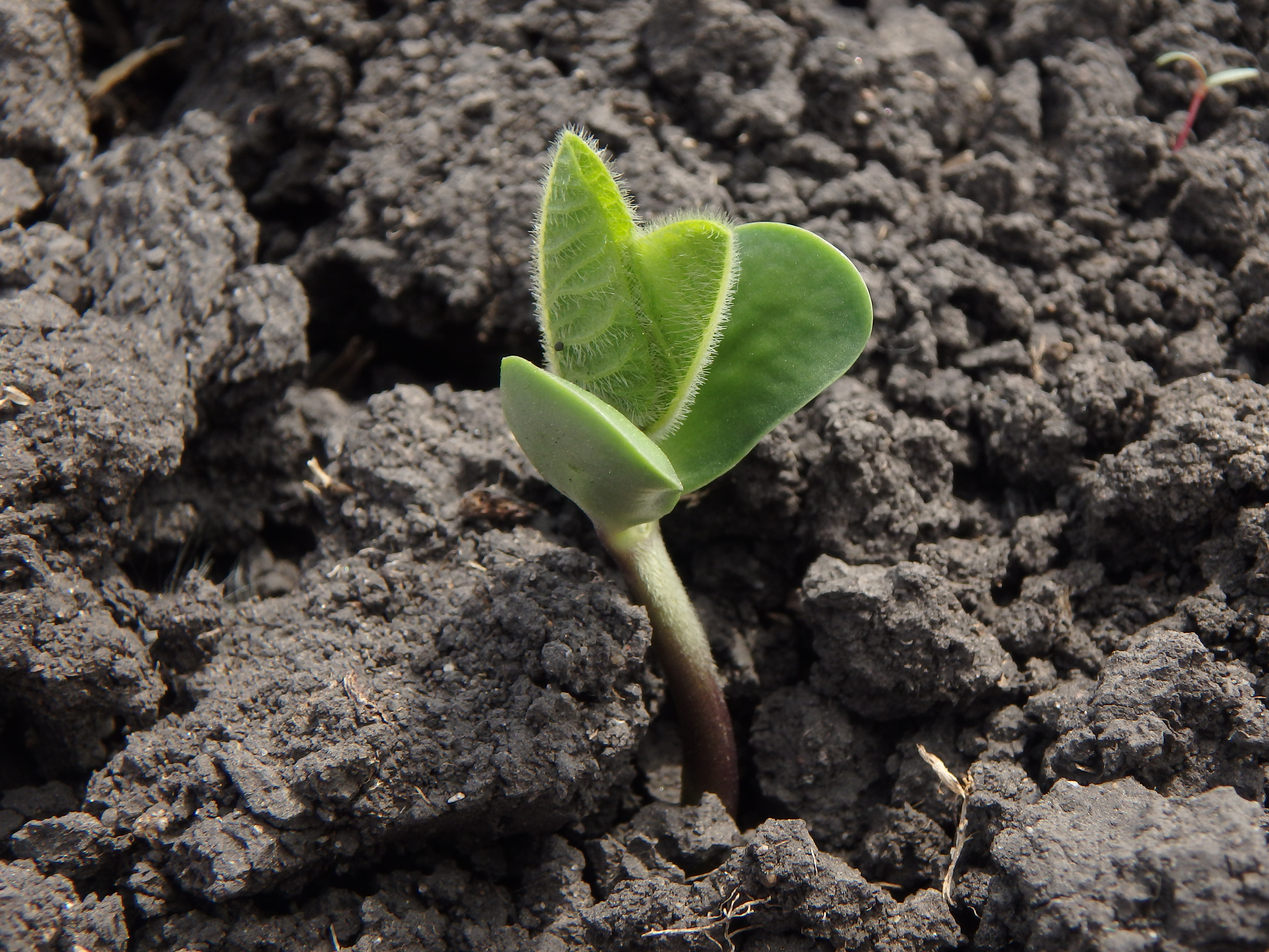 Soybeans are continuing to emerge in dry conditions through large soil clods. They are currently at the VE (cotyledon) stage of development. Shallow seeding of Team B and C plots has left some soybean seeds sitting on the soil surface in some areas. We will see how this affects final plant stand in a few weeks.