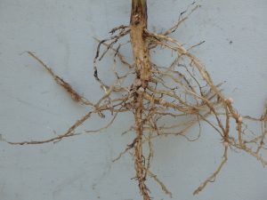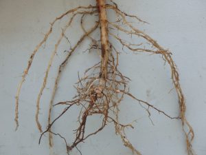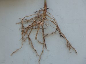 Nodulation was assessed by counting the number of live root nodules on five random plants per plot (3 treatments x 3 reps = total of 9 plots), calculating the average for each team. All teams had adequate nodulation (recommendation: 5-10 nodules per plant for maximized yield), but Team A soybeans had double the amount of nodules (14 per plant) compared to Teams B and C (7 nodules per plant). This was likely due to double inoculation on a field that had no previous history of soybeans.