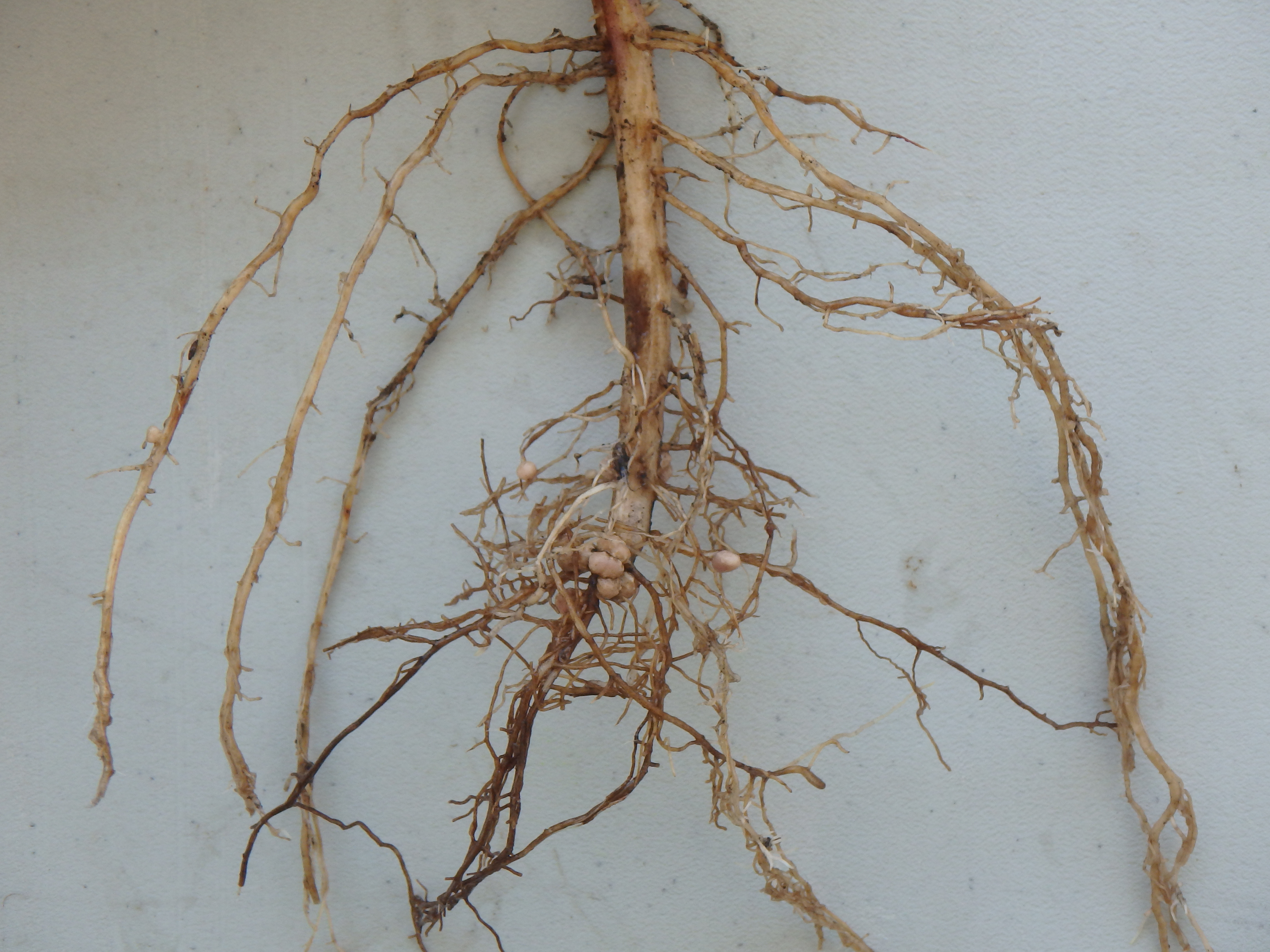 Nodulation was assessed by counting the number of live root nodules on five random plants per plot (3 treatments x 3 reps = total of 9 plots), calculating the average for each team. All teams had adequate nodulation (recommendation: 5-10 nodules per plant for maximized yield), but Team A soybeans had double the amount of nodules (14 per plant) compared to Teams B and C (7 nodules per plant). This was likely due to double inoculation on a field that had no previous history of soybeans.
