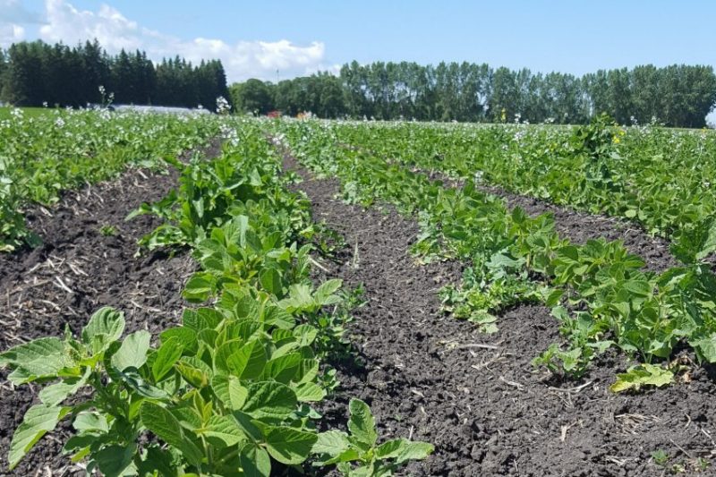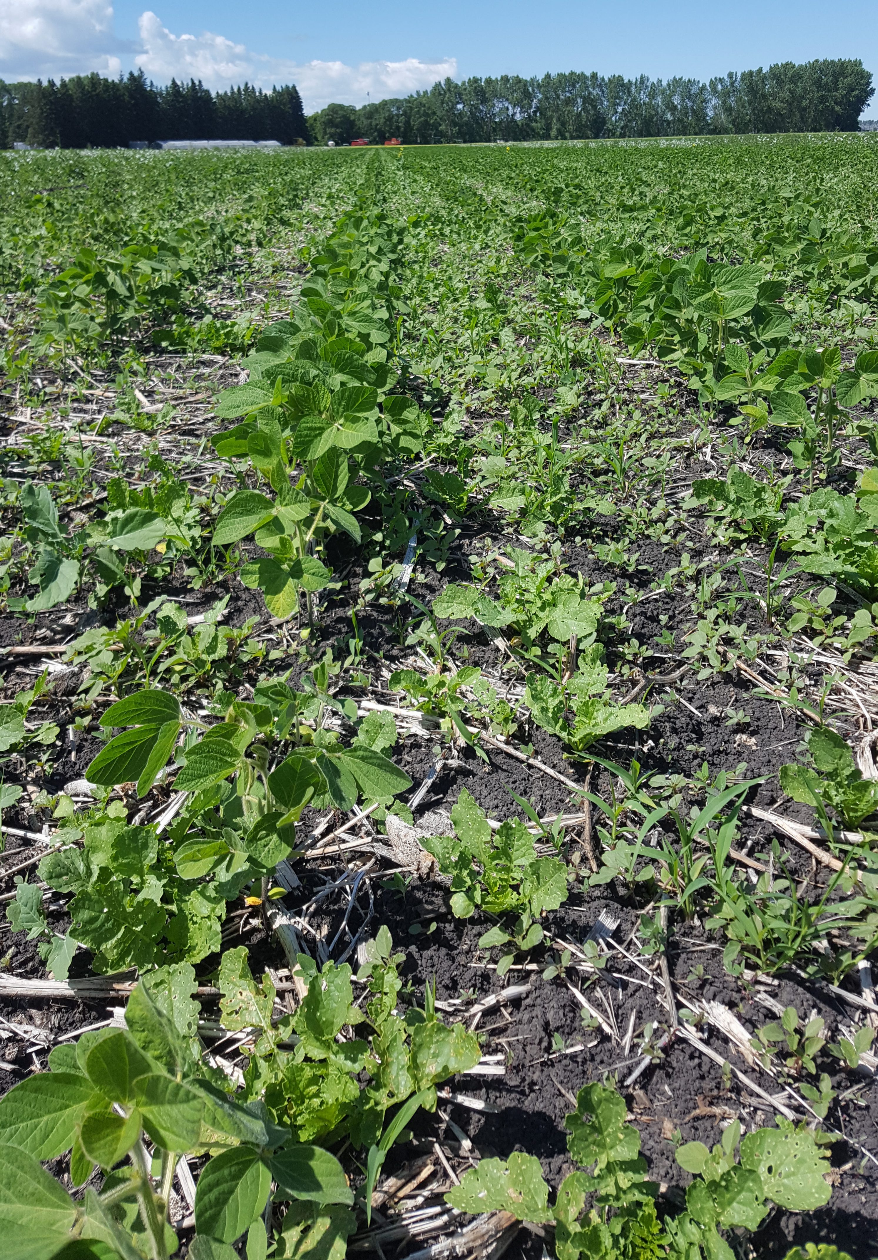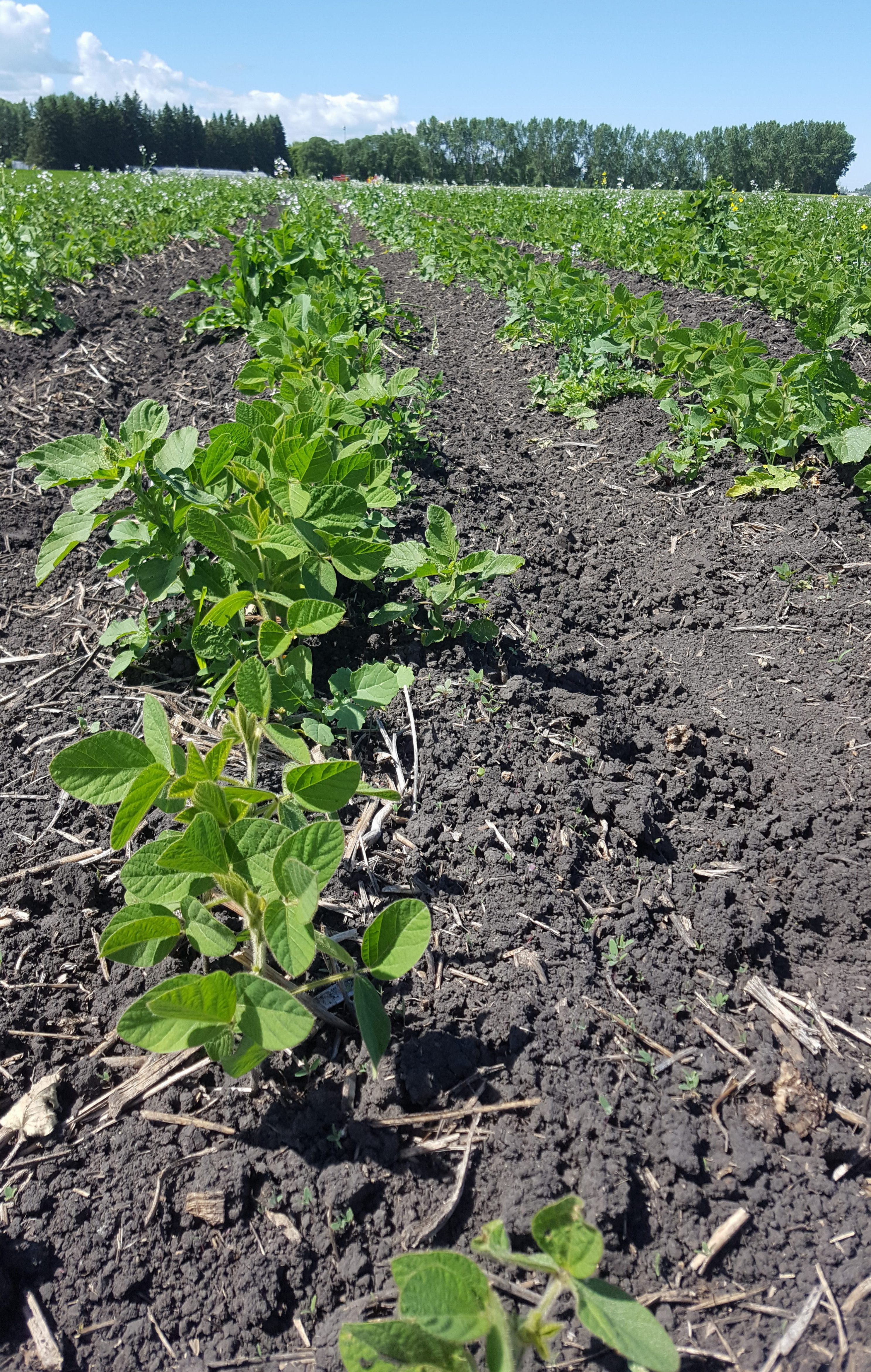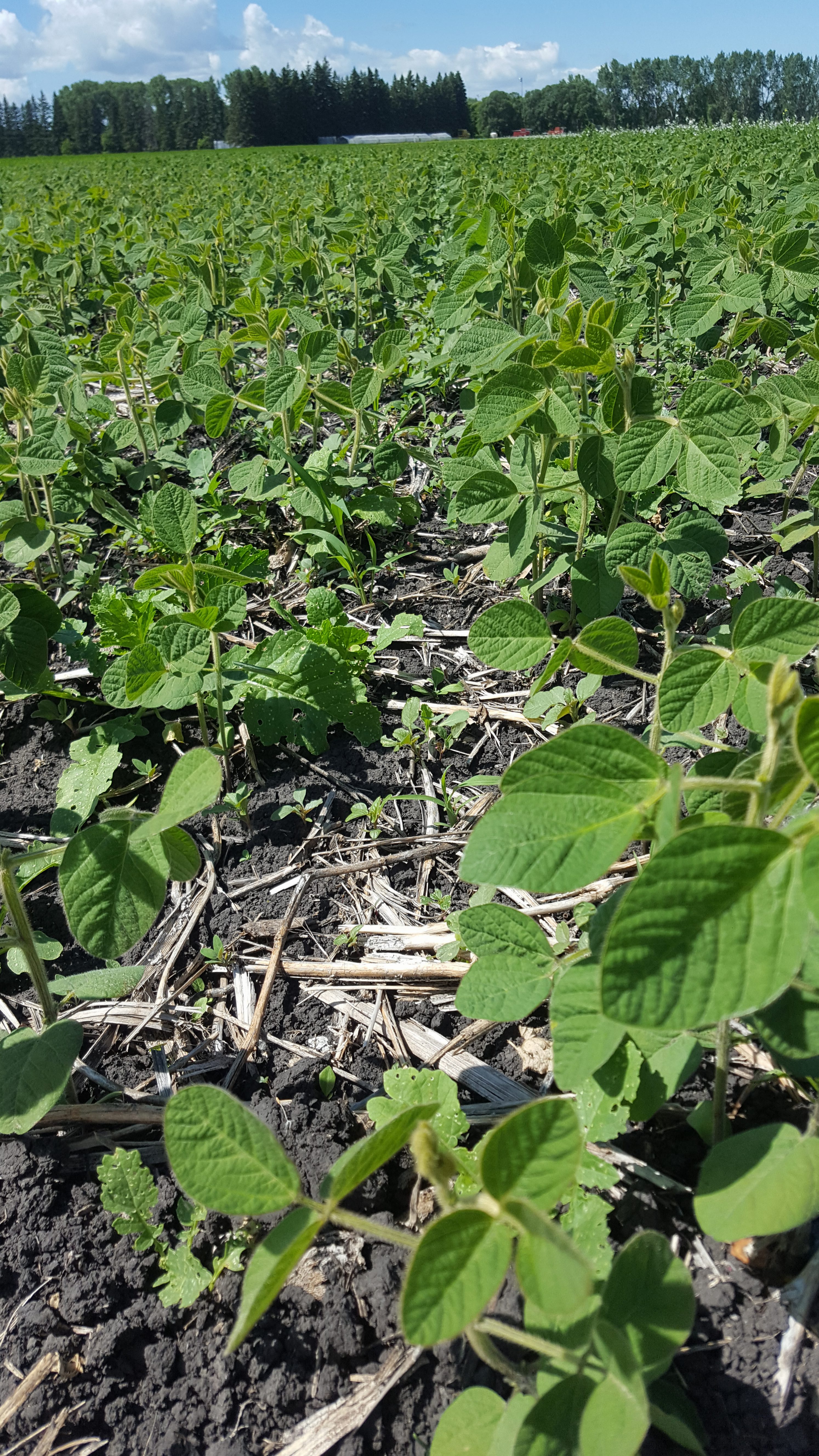 Soybeans are now at the 4th trifoliate (V4) stage with the 5th trifoliate beginning to unfurl. Team A plots received a 2nd glyphosate application due to heavy weed pressure. Team B plots received a 3rd glyphosate application also due to weed pressure and sticking to the “game plan.” Manual weed control continues for Team C plots, which recently received another round of inter-row cultivation.