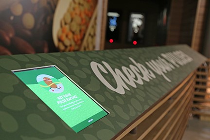 The display features a large removable kidney bean, which further comes apart to show the plant’s inner workings. And those wishing to test their knowledge of pulses and soybeans are encouraged to play the Check Your Pulses game on the iPad in front of the wall.