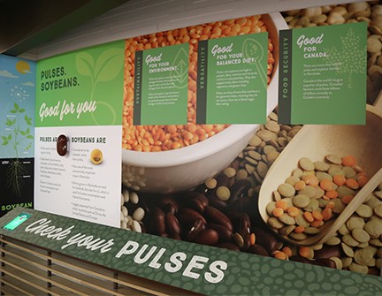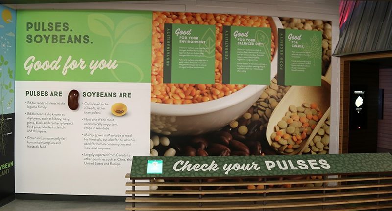 The display, which was designed in partnership with Vantage Studios and Imprint Media Services, features illustrations and information related to pulses and soybeans in Manitoba and in Canada. Observers will learn about the soybean nitrogen cycle, how pulses are an important part of a balanced diet, how sustainability is a key focus of the industry and much more.