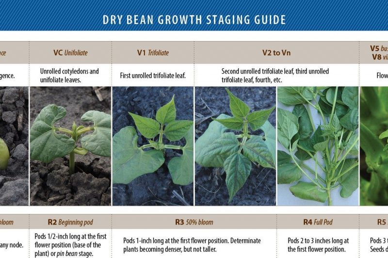 This visual guide was created to assist farmers and agronomists with identifying dry bean growth stages. Proper identification of growth stages is important for scouting and crop management, such as plant stand assessment, product application and harvest timing.