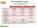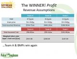 Revenue assumptions included yield and expected grain price ($11.50/bu for Teams A and B, $13.30/bu for Team C – $2.00/ac premium for organic marketing). However, dramatic yield differences showed themselves once again in the overall marginal return over input plus fuel cost, leaving Team A and BMPs the winner in both categories!