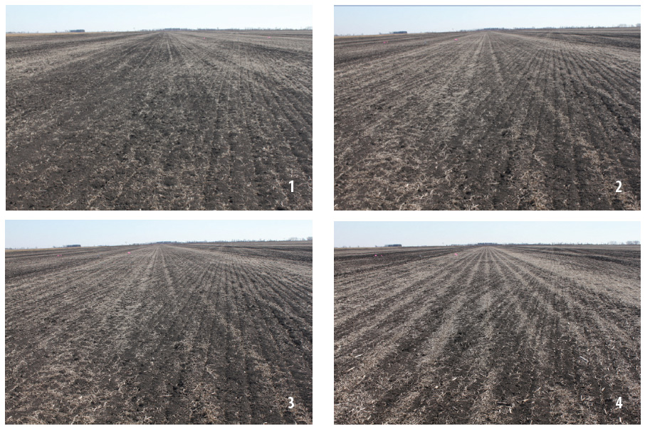 No significant differences in soil temperature or moisture were observed between soybean residue management treatments during test-crop emergence for any of the experiments. When walking in the field in the spring, it was often hard to visually distinguish between soybean residue management treatments (Figure 2). Given the low amounts of soybean residue in the spring, the similarity between residue management treatments was not very surprising.