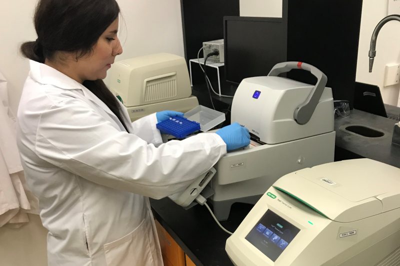 Figure 1. PhD student, Nazanin Ghavami Shirehjin, running DNA extracts of cyst nematodes from soybean fields to see if they are a match for the soybean cyst nematode.