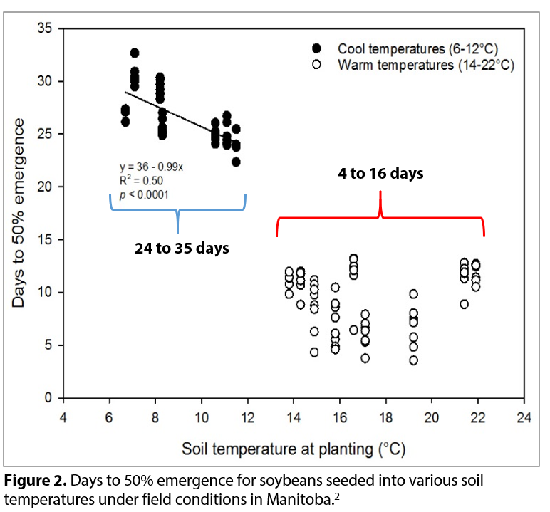 4 Mohr, R. 2018. Effect of soil temperature at different planting dates, and of residue management, on soybean. Available at manitobapulse.ca/research-project/effect-of-soil-temperature-at-different-planting-dates-and-residue-management-on-soybean/.