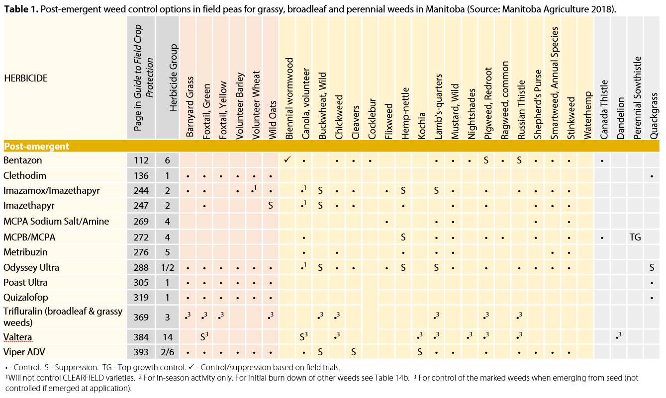 FP Weed ControlHerbicide Options for Field Peas 2020 Herbicide Options for Field Peas Quick links: Weed Seedling Identification Guide and 2020 Field Crop Protection Guide and addendums. 2019 Herbicide Options for Field Peas