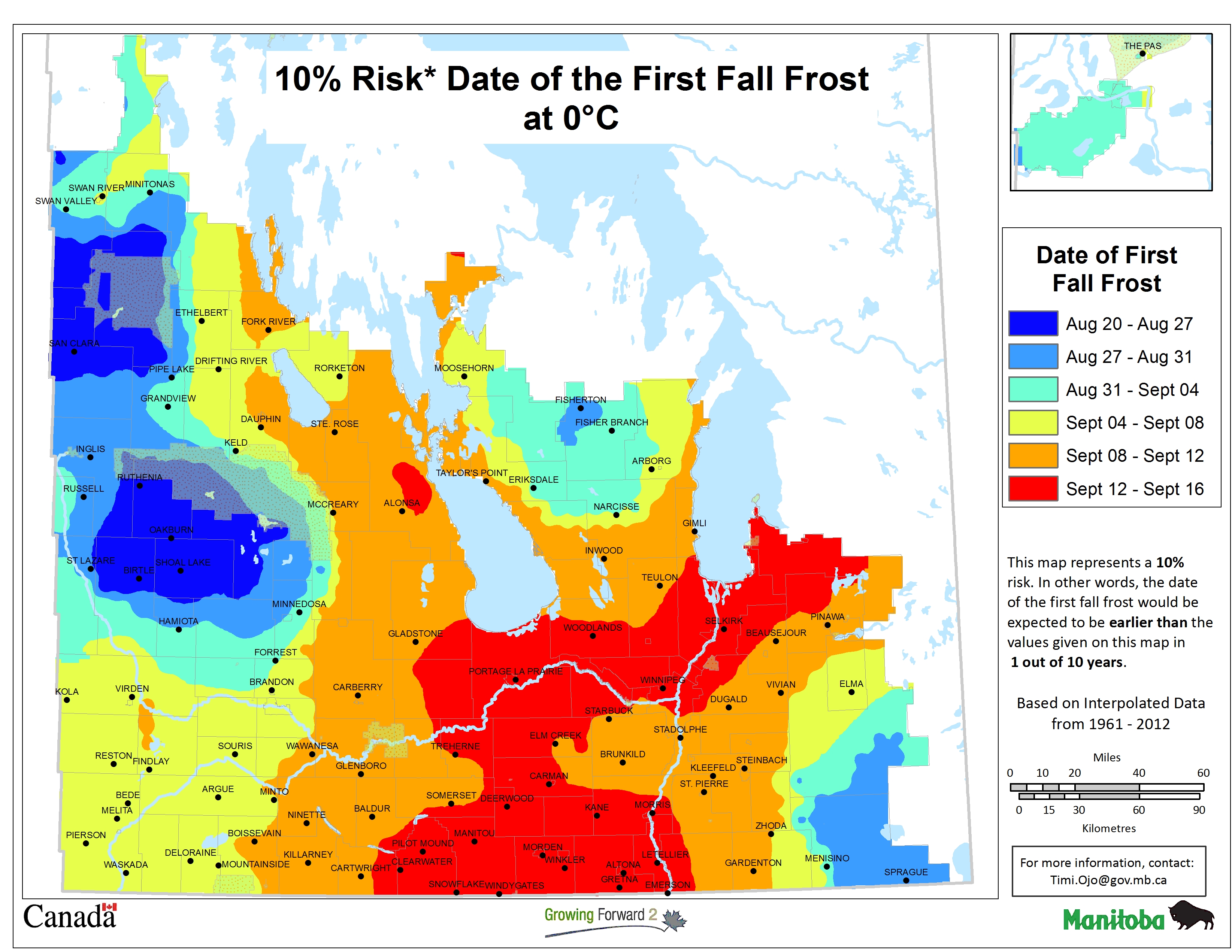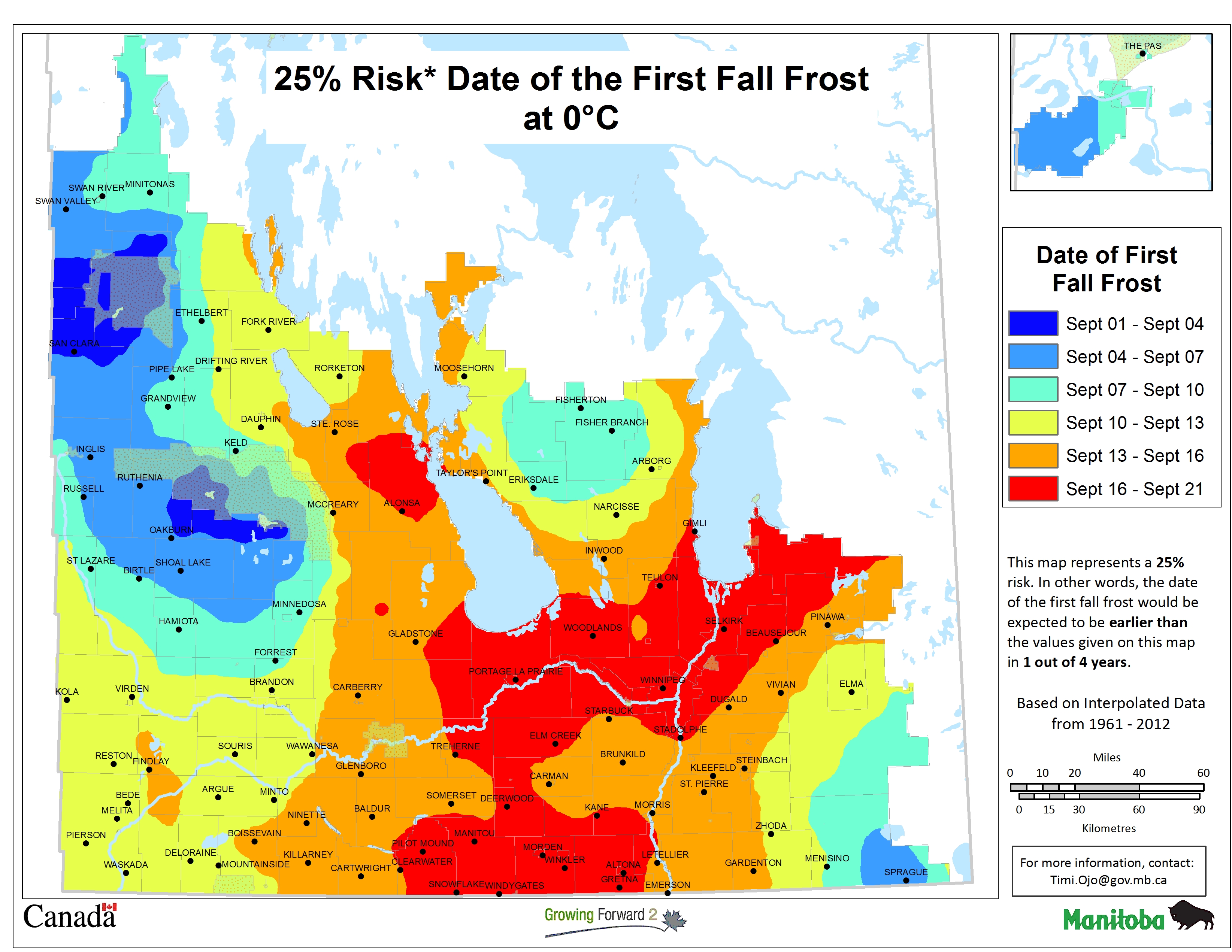 It is initially important to select a soybean variety suited to your maturity zone in Manitoba. This is to ensure the crop reaches maturity prior to any major frost events in the fall. However, weather anomalies have been known to occur and it is important to understand the potential risks.
