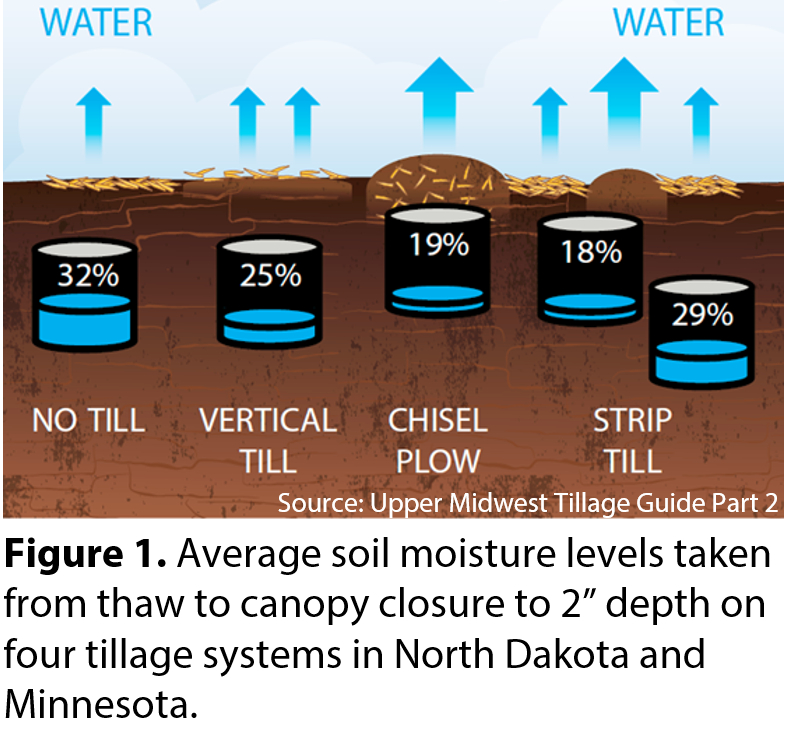Any type of tillage results in higher evaporative water loss compared to untilled soil (Figure 1). Each cultivator pass in the spring can remove approximately 10-12 mm of water from the soil.