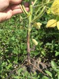 Phytophthora root rot (PRR) is considered both a root and stem disease. Late-season infection of PRR appears as a chocolate-brown lesion on the stem that extends upward from the soil line. In some cases, this lesion may develop up one side of the plant only. Dig up roots to confirm. If roots appear rotten (e.g., root mass is reduced and discoloured, nodulation is minimal), it is likely PRR. If a stem lesion is present and roots appear healthy, it may be another stem disease like northern stem canker or pod/stem blight.