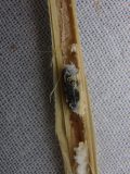 Symptoms may first be noticed from afar as lodged plants or wilted, drying leaves at the top of the canopy. Inside the canopy, symptoms may appear as white mycelium (mouldy growth) along the stem, with black sclerotia bodies inside the stem.