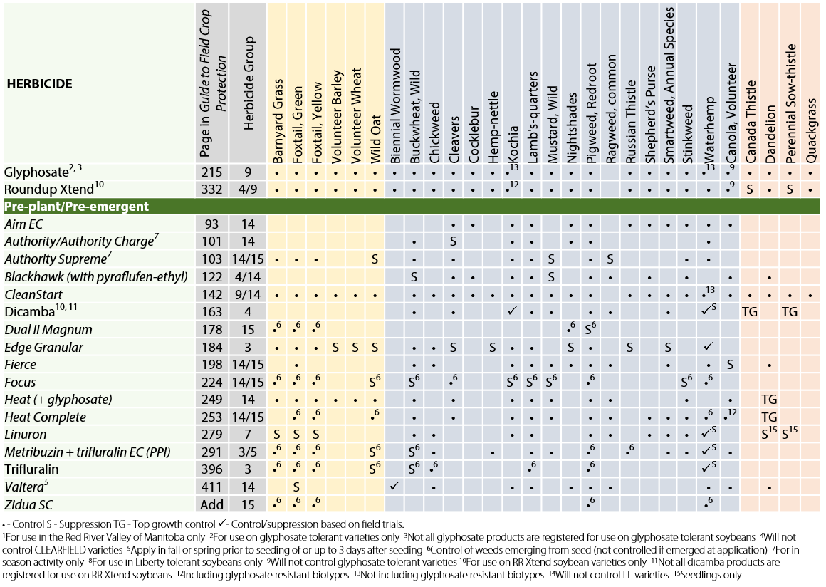 - Pre-plant and pre-emergent herbicide options for soybeans
