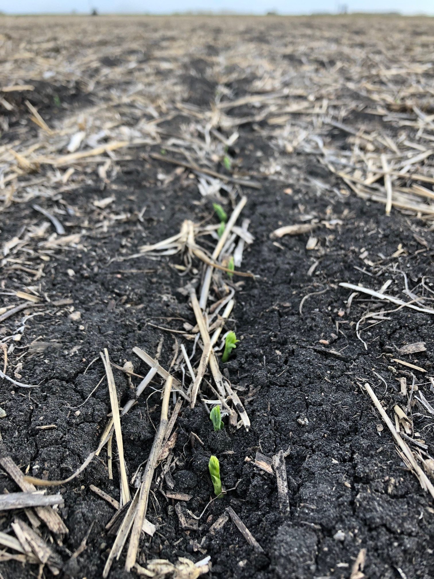 Soybean seeding started over the past two weeks in the central and northwest regions of Manitoba and some areas of the southwest. This week, soybean seeding will be fully underway across Manitoba. Signs of germination are visible in soybean fields seeded in early May.