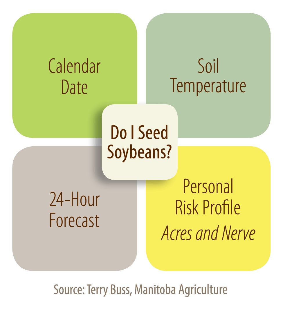 - Prioritize cereal, pea and canola seeding before soybean seeding.