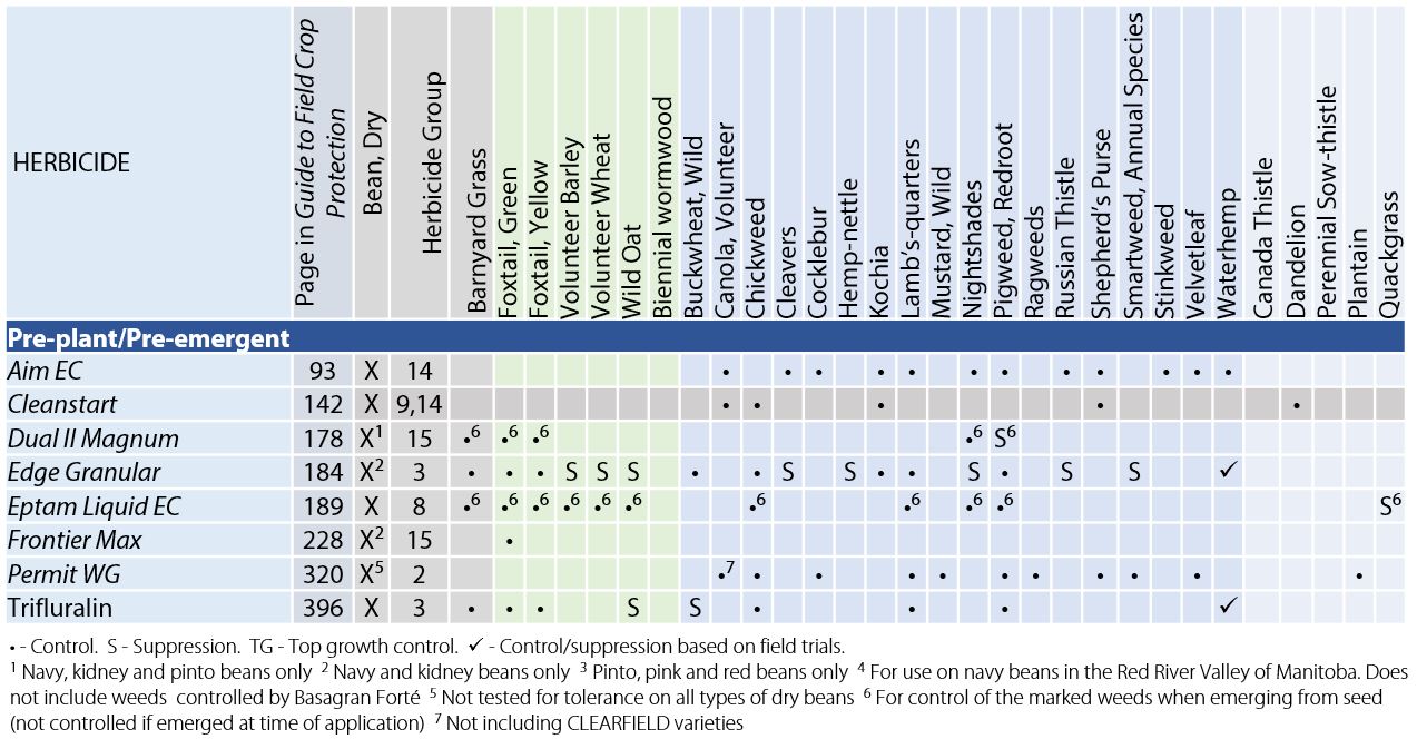 - Pre-plant and pre-emergent herbicide options for dry beans