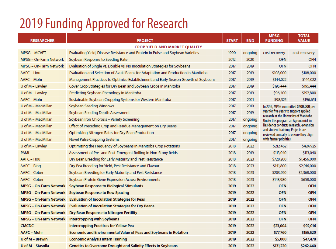 In the table you’ll notice the area of soil health is lagging. In the interest of staying in the game and winning we need to achieve some balance. Soil health and sustainable, winning pulse and soybean crops go together like peas in a pod. The unique sensitivities of pulses and soybeans to soil biological, chemical and physical conditions means there is plenty of useful knowledge to be revealed through research. Several projects in this area are in the proposal stage. As we enter the second half of the five-year funding cycle, soil health will round out the program.