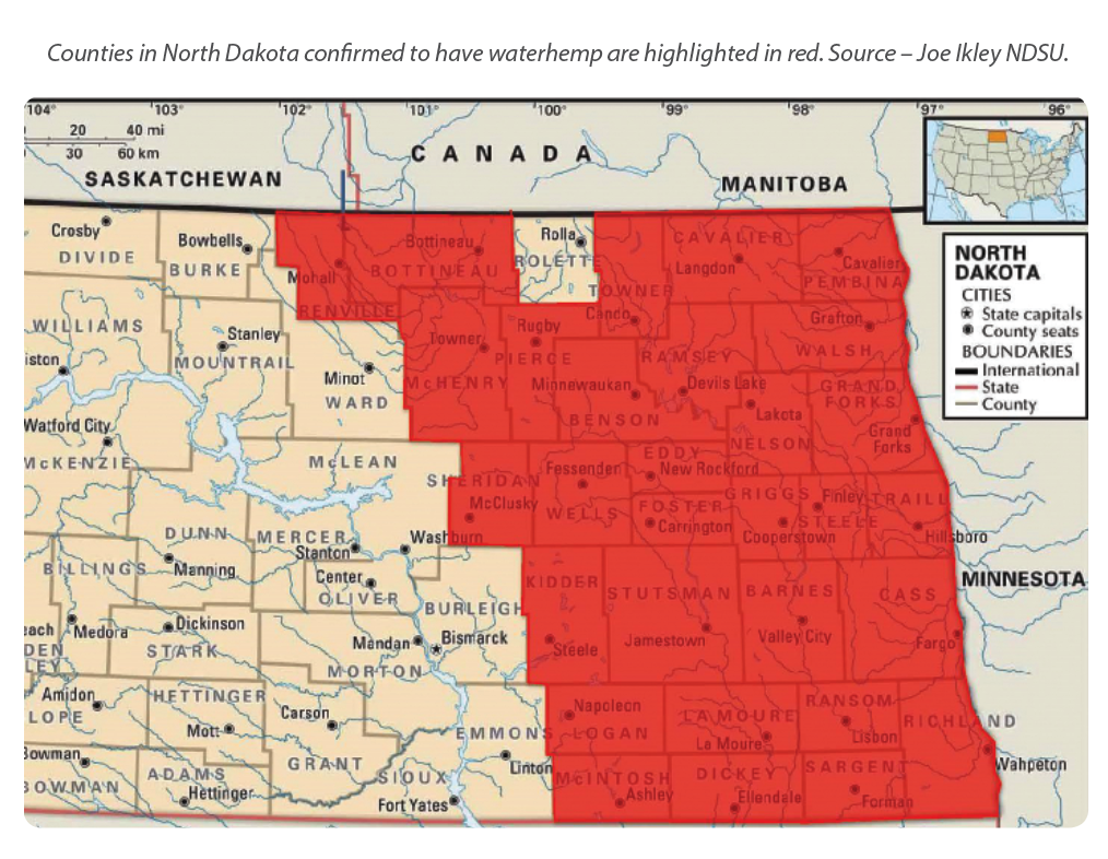 Waterhemp had been detected in the US Red River Valley in the 1990s, with the first confirmed herbicide-resistant populations discovered in Iowa and Illinois in 1993 to the Group 2 herbicide imazethapyr. The first Canadian confirmation of herbicide-resistant waterhemp (to that same active ingredient) occurred in 2002 in Ontario. And while the waterhemp populations were spreading in the U.S. and developing different combinations of herbicide resistance (to Groups 2, 3, 4, 5, 9, 14, 15 and 27), Manitoba had been relatively lucky to see a minimal number of detections. Media sources indicated that the threat was creeping closer, spreading across eastern North Dakota and being found in more counties in Ontario. So when the calls started coming in 2019, there should have been no surprise. As many have said, weeds do not respect borders.