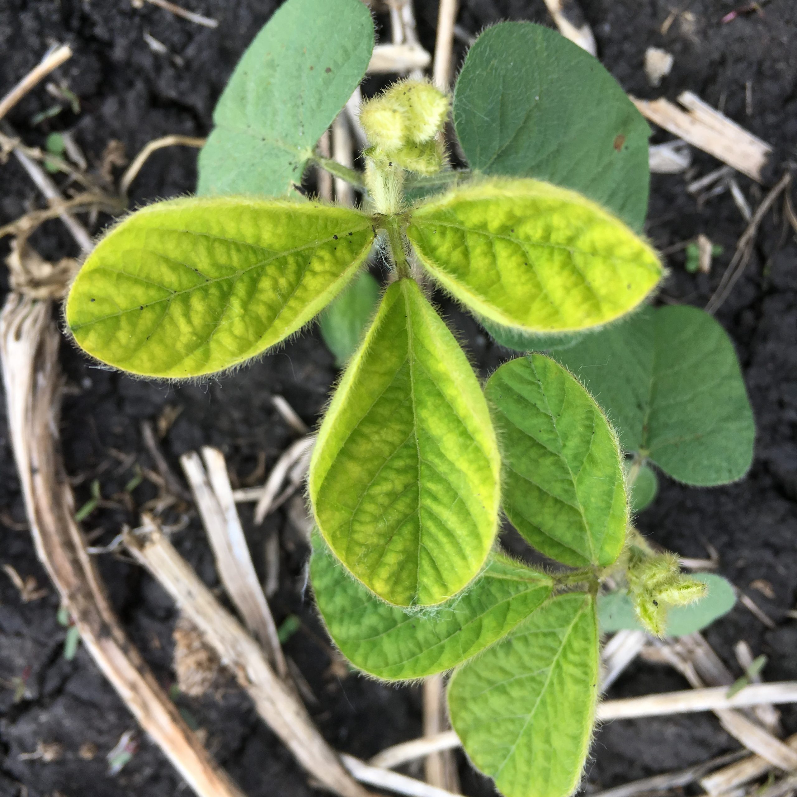 - Soybeans range from the unifoliate stage (VC) in later-seeded fields to the V4 and flower bud stages in more advanced fields. Soybean plants will begin to flower this week due to the change in day length. Symptoms of IDC are starting to pop up as more soybean crops reach the trifoliate stages. Hail over the weekend has also caused some damage to soybeans. To assess hail damage in your soybeans, click here.
