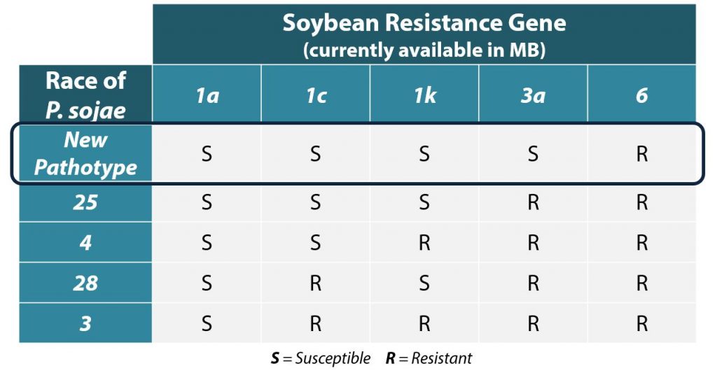 Table 1. Resistance to Phytophthora sojae (rps) genes currently available in Manitoba and the most predominant races/pathotypes present.