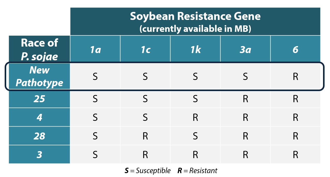 Table 1. Resistance to Phytophthora sojae (rps) genes currently available in Manitoba and the most predominant races/pathotypes present.