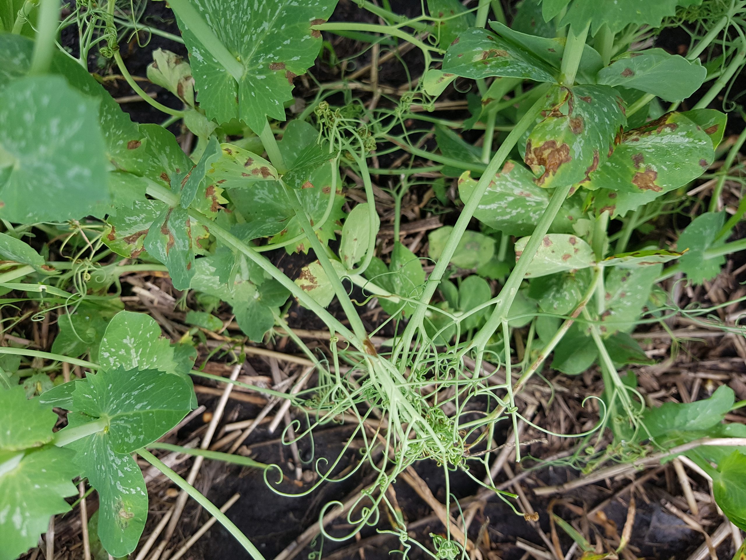 20200702_Bacterial blight in peas (more severe) at V12-R1 near Oakburn