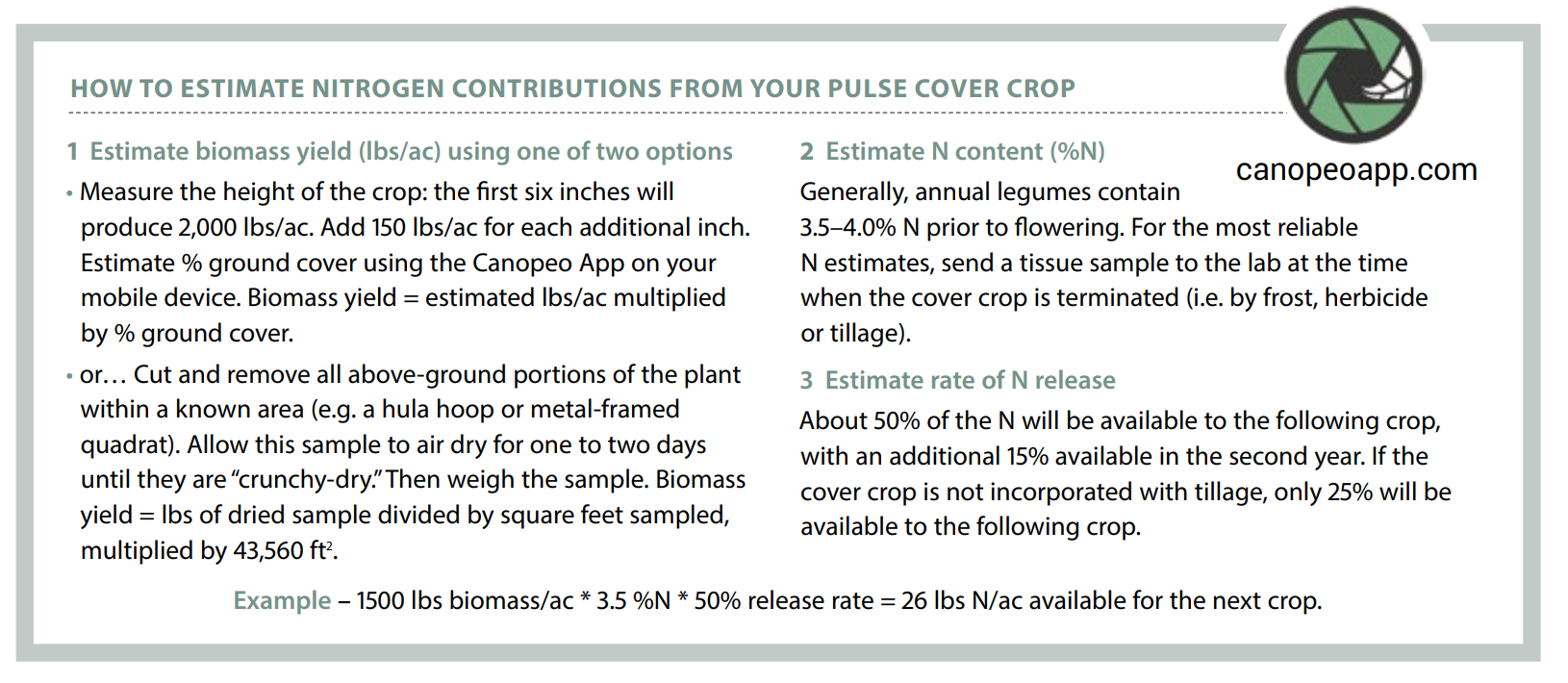 - Peas produced greater and more consistent levels of biomass compared to lentils. Faba beans have not been tested, but they have great potential as they are the most frost-tolerant and highest N-fixer of the pulses.