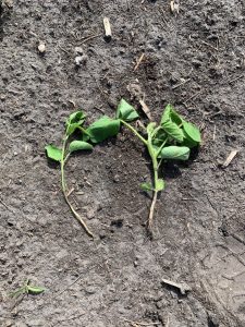 The On-Farm Network team is busy wrapping up data collection for the season! We have been working away at late season plant counts in our row spacing and population trials. Widening row spacing while maintaining target population, or increasing target population while maintaining row spacing, have the same effect – increasing the number of plants per row. This can lead to increased plant-to-plant competition within the row, the effects of which can be seen in the image below. Increased competition early in the season could lead to a decline in plant stand, which we assess with our late season plant counts.