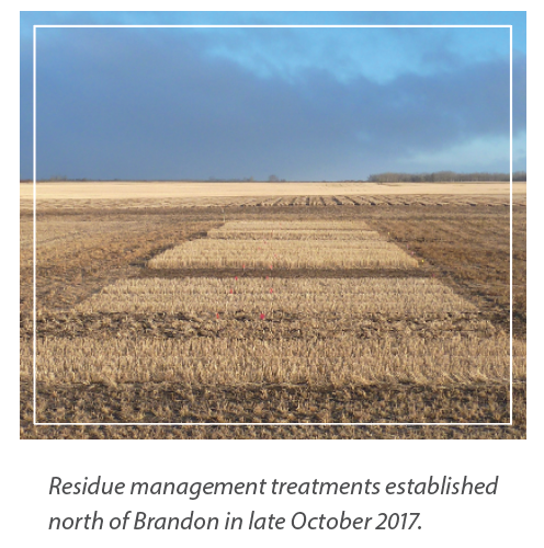 There is also some interest in the potential for using different residue management strategies to create a more suitable seedbed for soybean establishment. Theoretically, using residue management practices to modify the early growing season micro-climate or give the crop a competitive advantage under stressful conditions, might help create growing conditions more conducive to soybean establishment, growth and yield. The question is how effective this is under Manitoba conditions, and what are the relative costs versus benefits.