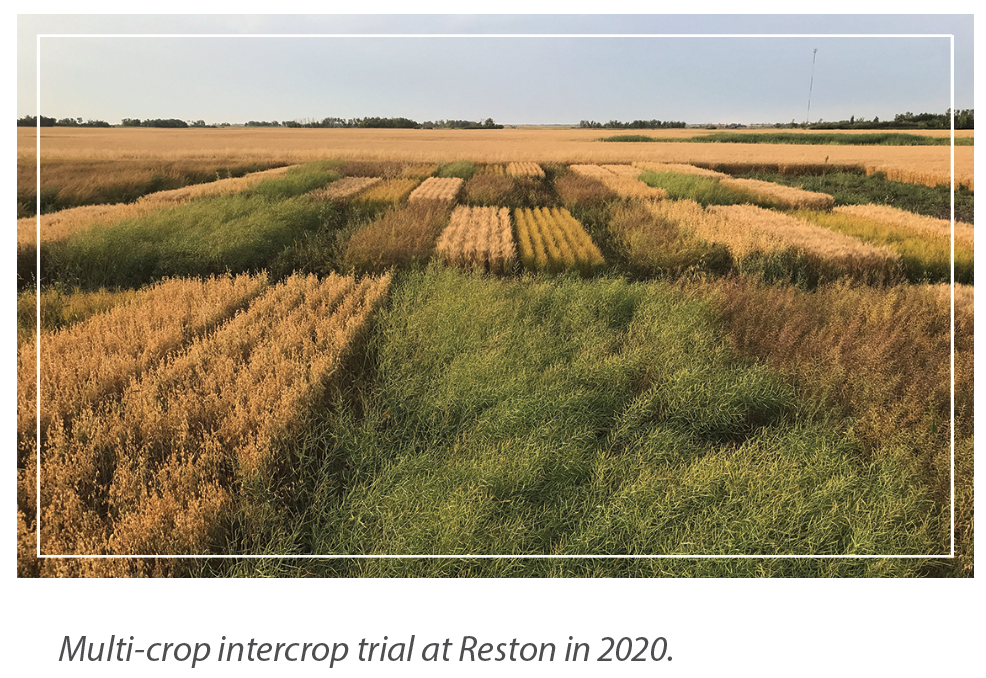 The first project is looking at the agronomic and economic parameters of intercropping peas with either canola, mustard, flax, wheat or oats, called the Multi-Crop Intercrop Trial. This project is being run at WADO (Reston and Melita sites) and the Prairie Crop Diversification Foundation (PCDF) at Roblin.
