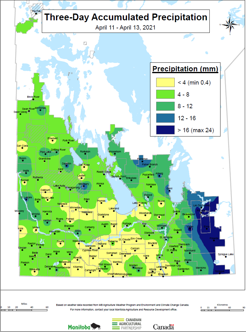 This week’s snowfall has brought some much needed moisture. However, actual precipitation amounts have been variable across the province, ranging from 0.4 mm to 24 mm. To determine how much moisture you received from this snowfall, 1 cm of snow is equal to approximately 1 mm of water. To help you navigate a potentially dry spring afterward, we have gathered some important points on crop and soil management under dry conditions. Overall, the best approach when facing dry seeding conditions is to enact best agronomic practices that maximize yield potential.