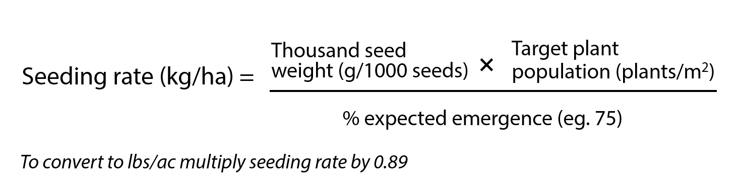 There can be wide variation in seed size among varieties and seed lots. Calculate seeding rates using the thousand seed weight (TSW) of your specific seed lot, target plant population and expected seed survivability based on your farm history.