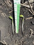 Scout your soybean fields 3-5 days after the frost event to assess the growing points and plant stand. Count the number of healthy plants and those that have green tissue and show signs of regrowth. If plant populations are very low (<80,000 plants/ac), re-seeding options should be considered.