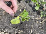 Iron deficiency chlorosis (IDC) symptoms are starting to show up in soybeans. IDC appears as interveinal yellowing (chlorosis) of plant tissue as young as the first trifoliate leaf. Conditions that lead to IDC include excess calcium carbonates, soil moisture, soluble salts and/or high nitrate levels that can all impede iron (Fe) uptake into the plant. It is often a temporary condition that resolves itself. If symptoms dissipate by the V5-V6 stages, yield loss will be minimal.