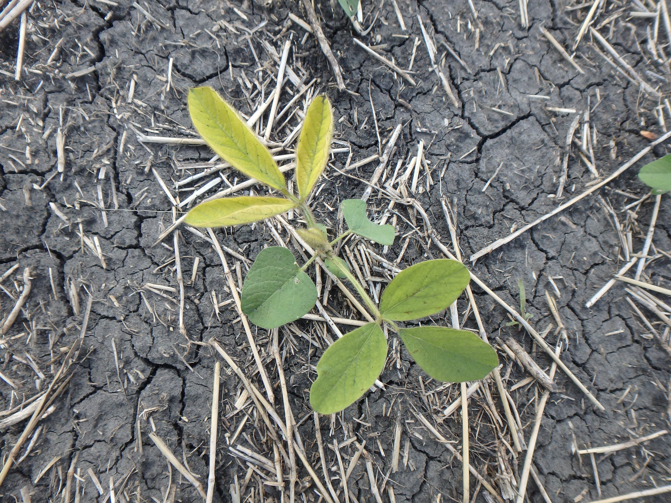 - Soybeans range from V1 to V4 and will be starting to flower soon with the change in day length. IDC symptoms have started to show up in some fields, but most fields remain symptom-free.
