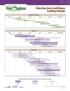 - Pea leaf weevil – assess field peas and faba beans from emergence to V5 (fifth true node stage) looking for signs of leaf notching. A new pest to Manitoba, confirmed presence in very low populations in northwestern areas (Swan River, Gilbert Plains, Dauphin, Plumas).