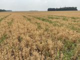 Are you dealing with a mature pea crop that has patches of green? If there are green plants that just don’t seem to be maturing and you’re worried about seed staining at harvest, one option is to desiccate. Consult with your buyer on the products they accept and ensure you’re following the preharvest interval. If it’s too late to desiccate, there is the option to swath and leave them for a day or two to dry down (ensuring the winds will be minimal), then combine very soon after. Beware that pea swaths are highly prone to blowing.