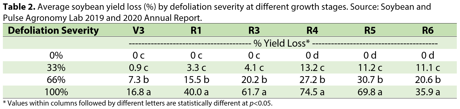 - Scout for aphids until soybeans reach the the R6 (full seed) stage. By full seed (R6), yield loss will be minimal and insecticide applications are no longer economical.