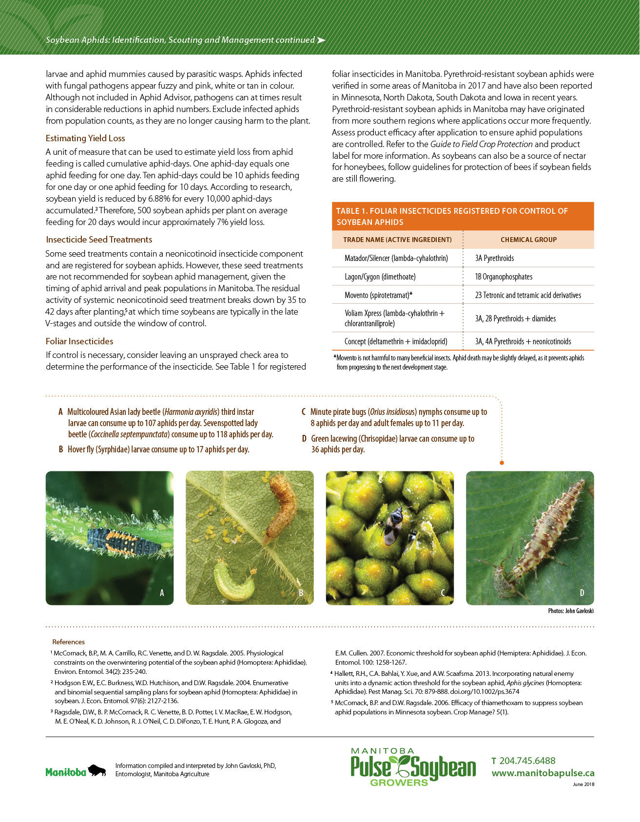 - High populations of soybean aphids are erratic and do not occur every year. Soybean aphids arrive in Manitoba predominately by southern winds.