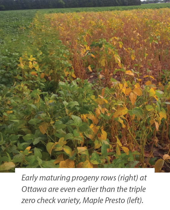 The Ottawa Research and Development Centre hosts Agriculture and Agri-Food Canada’s (AAFC) short-season soybean breeding program. This program develops maturity group (MG) 00 and earlier soybeans for short-season regions across Canada. The breeding objectives include early maturity, high yields and disease resistance, as well as objectives for the food-grade market. These include higher protein and end-use traits, such as fewer dormant seeds after soaking and firmer tofu texture.