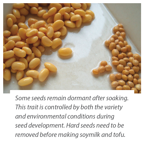 The Ottawa AAFC program has a long-running program developing food-type soybeans and has released natto, tofu and edamame varieties. The CFCRA soybean breeding project has an objective to increase soybean seed protein. Increased protein is valuable for producers in Manitoba as it helps improve the lower protein levels seen in western Canada. Higher protein is also important for food-grade soybeans, where growers receive premiums for export soybeans meeting the requirements of food manufacturers. The Grain Quality Lab at AAFC–Ottawa evaluates end-use traits for food-grade soybeans in testing for seed dormancy after soaking — the 11S:7S ratio (which is a measure of types of protein subunits with correlation to tofu quality and sulphur amino acid content) and tofu firmness. Soybean protein content and protein quality are independent traits and both higher protein concentration and quality are desirable.