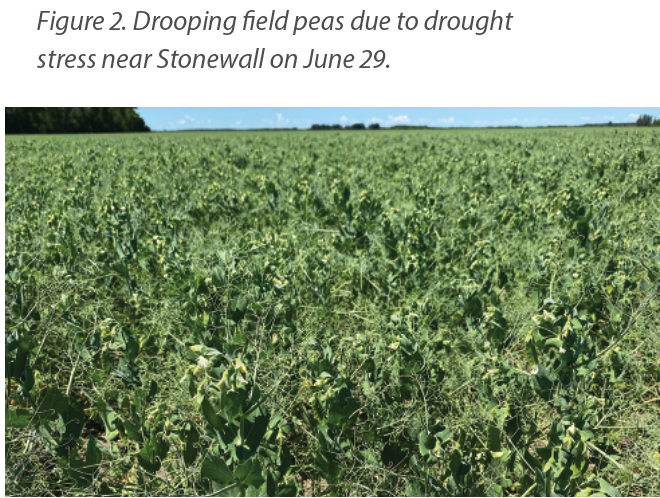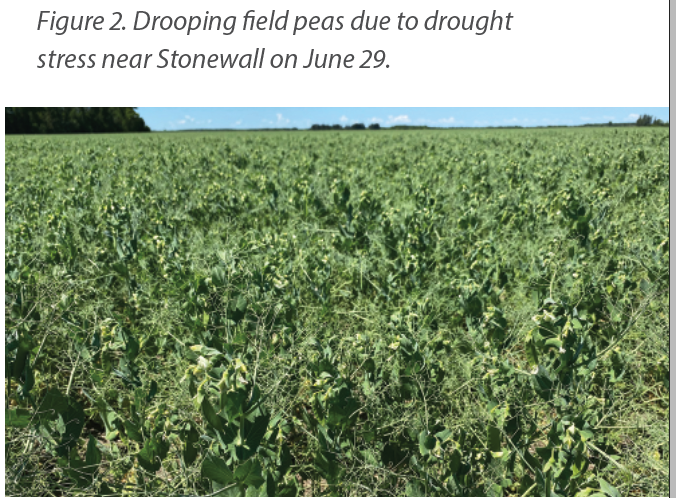 Delayed emergence, uneven plant stands and a wide range in plant development after emergence were common. Much of this stemmed from variable seed depth and reduced germination from the lack of moisture. Pulse and soybean crops in June had the widest variability in development that I have ever seen, with a spread of one to two development stages more than usual for each crop.