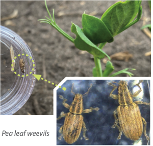 For advice about managing pea leaf weevil in Manitoba, farmers are encouraged to consult with John Gavloski from Manitoba Agriculture and Resource Development.