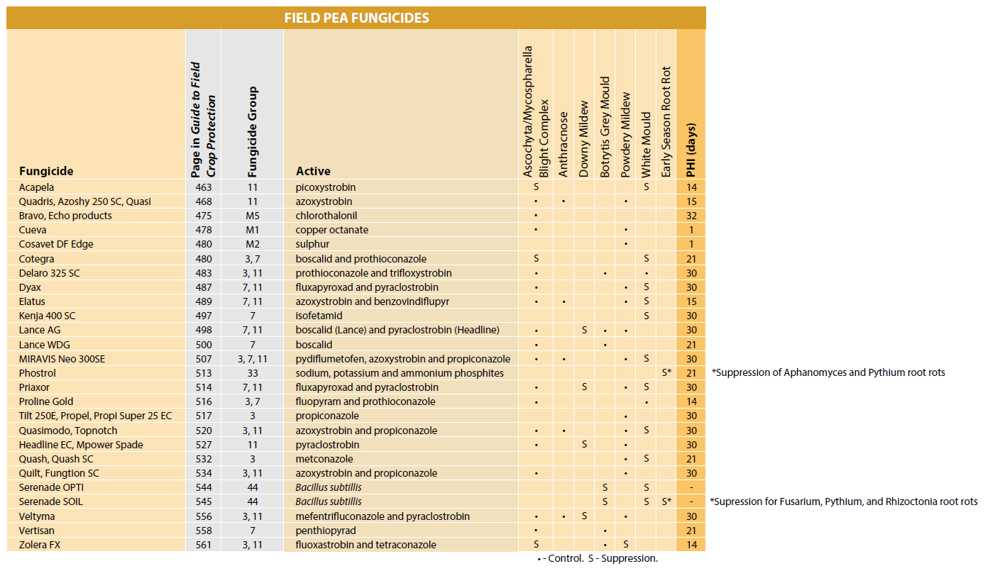 - Mycosphaerella (ascochyta) is the main disease target of foliar fungicides. It infects most pea crops at some severity level each year. The impact on yield is determined by how early the disease sets in and how quickly it progresses into the upper canopy. Early infections during R2 to R3 cause the most damage.