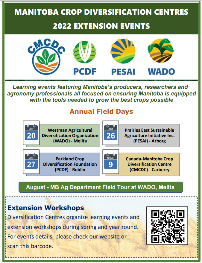 - August 9: Canada-Manitoba Crop Diversification Centre (CMCDC) Field Day at Carberry.