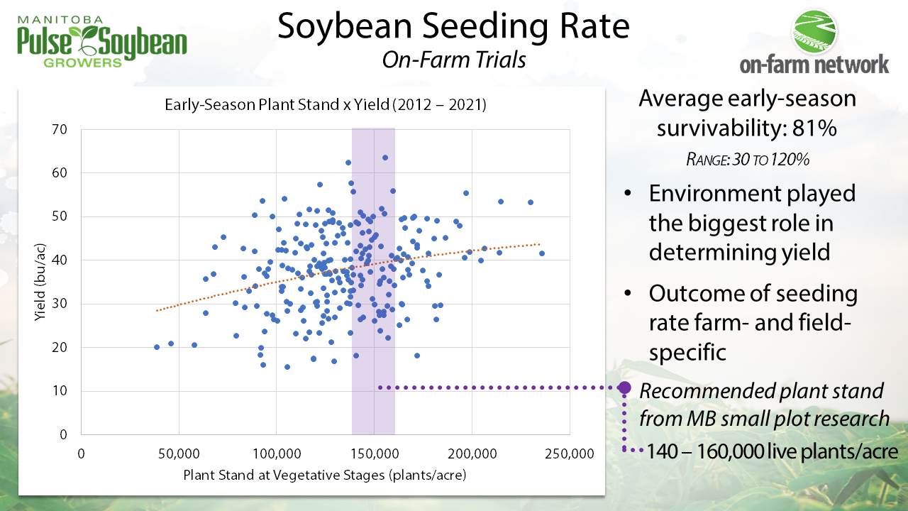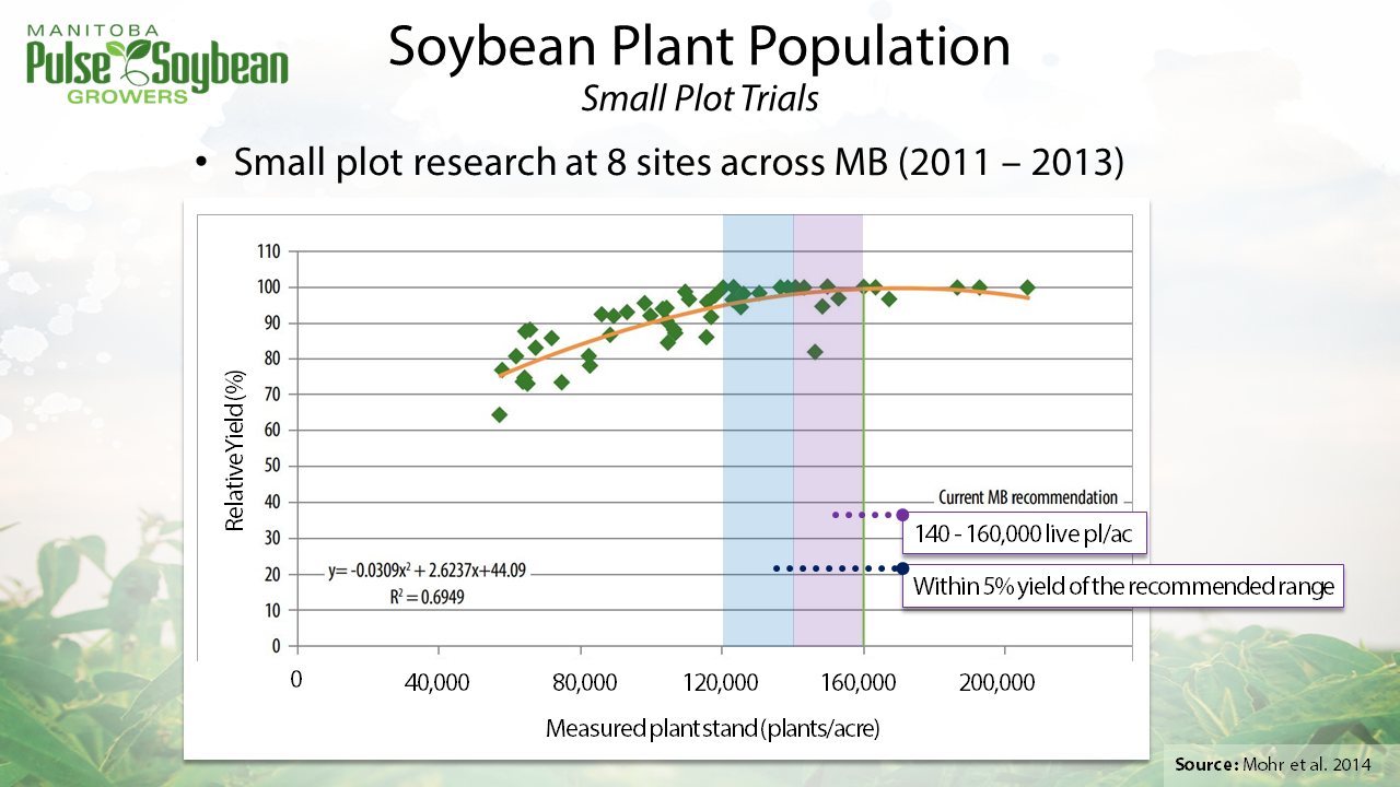 Results from small-plot research conducted in Manitoba indicate the following may be expected regarding different soybean plant populations: