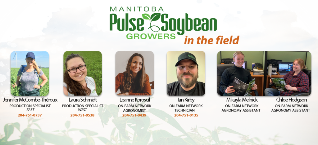 Have pulse or soybean agronomy questions this growing season? We’re here to help! Contact Laura (204-751-0538, laura@manitobapulse.ca) or Jennifer (204-751-0737, jennifer@manitobapulse.ca).